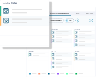 Planifiez instantanément vos visites préventives et pilotez le curatif depuis des calendriers dédiés par contrat.